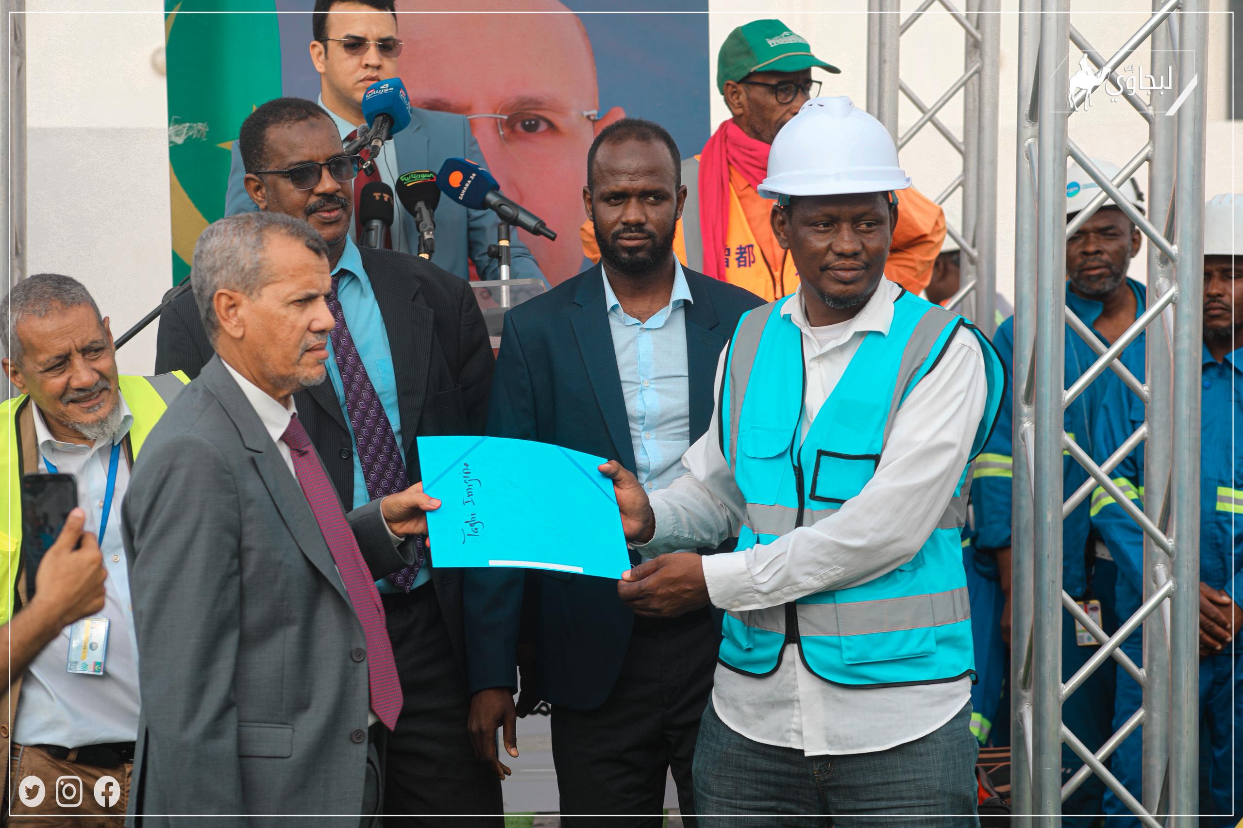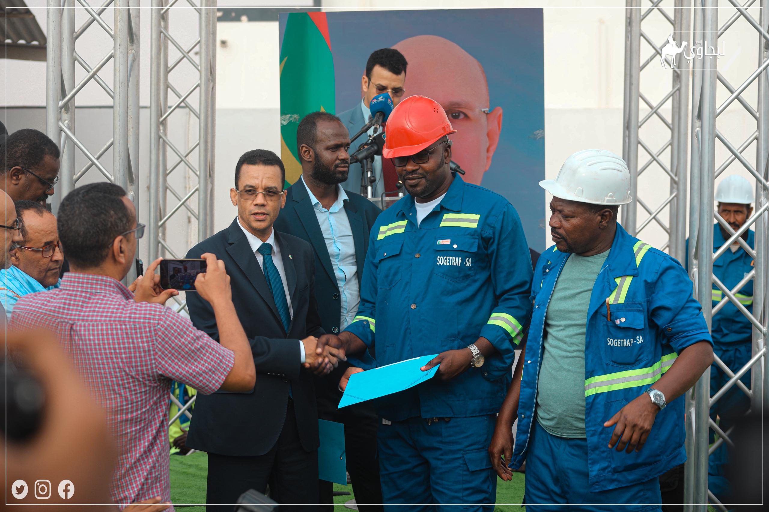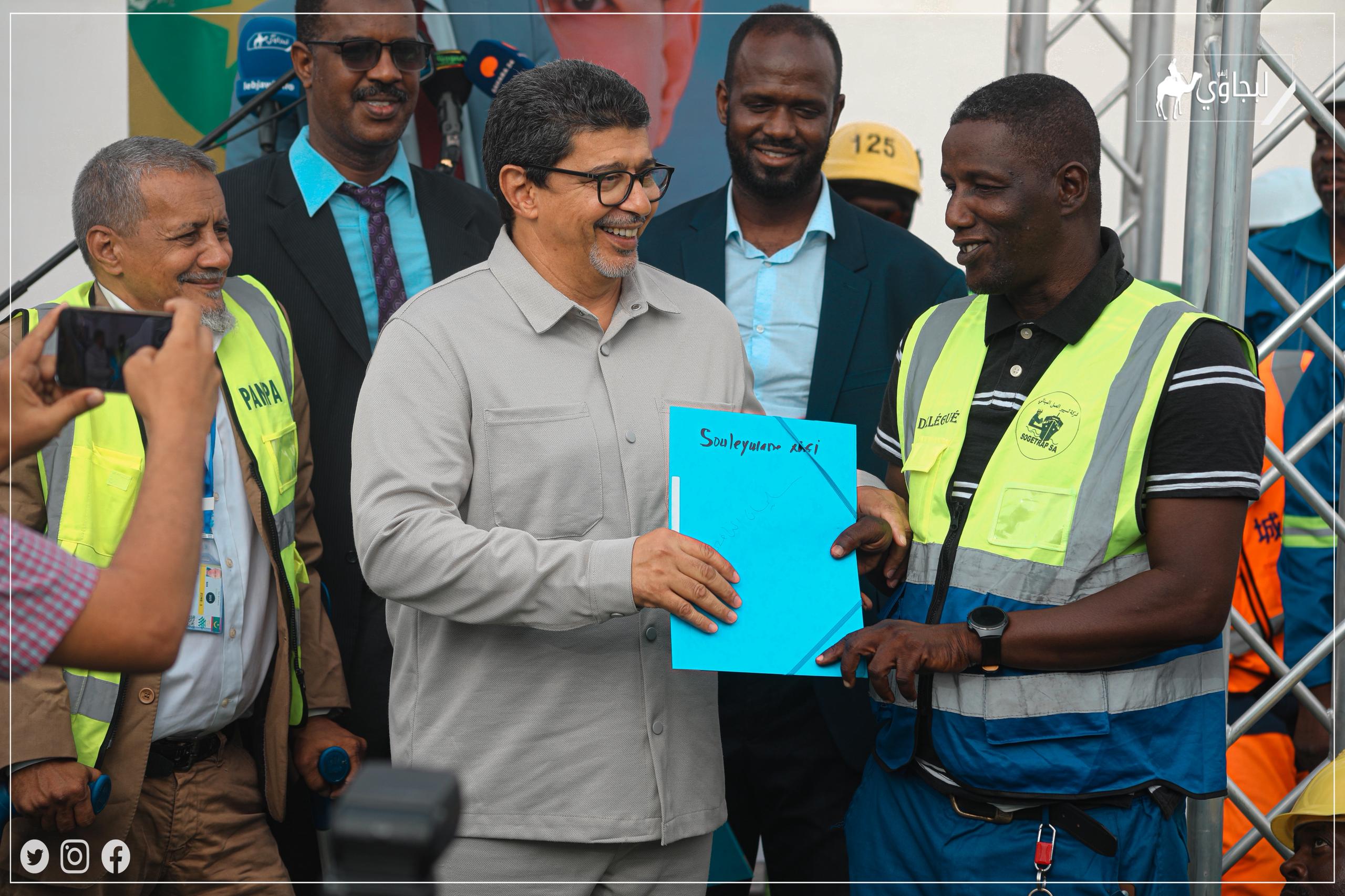 احتضن ميناء نواكشوط المستقل، مساء اليوم الخميس، حفلا مخصصا لتوزيع قطع أرضية على مجموعة من الحمالة العاملين بشركة "سوجيتراب"، وذلك في إطار تنفيذ تعهد لرئيس الجمهورية، السيد محمد ولد الشيخ الغزواني، دعمًا للفئات العمالية.