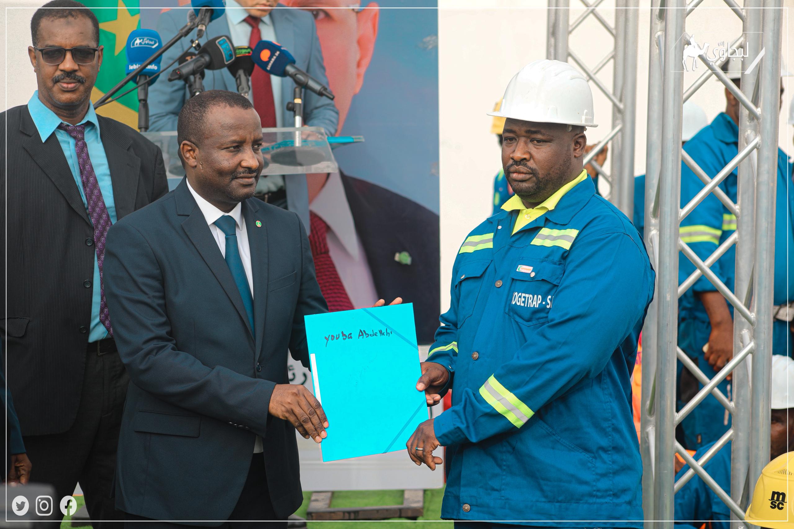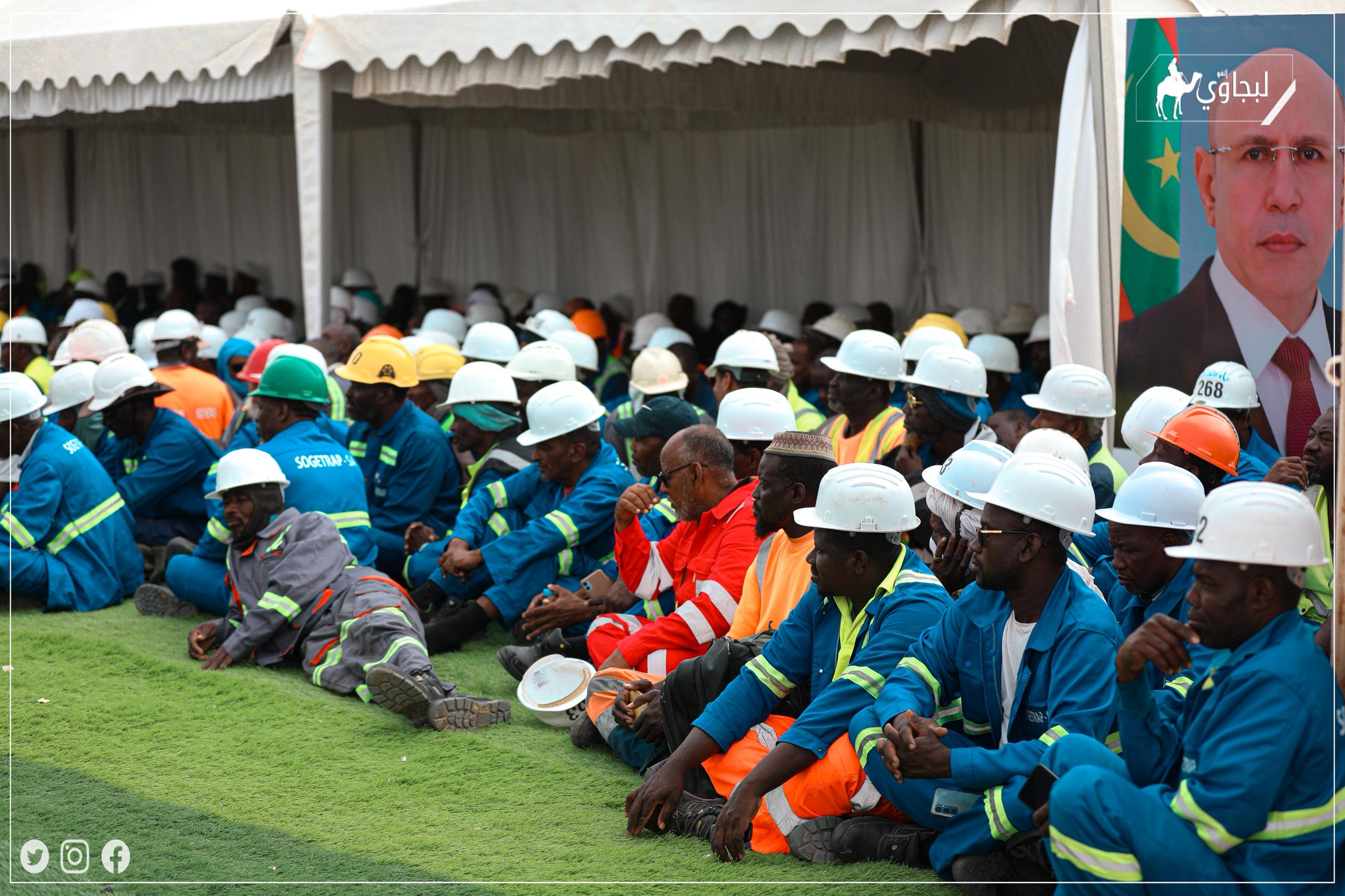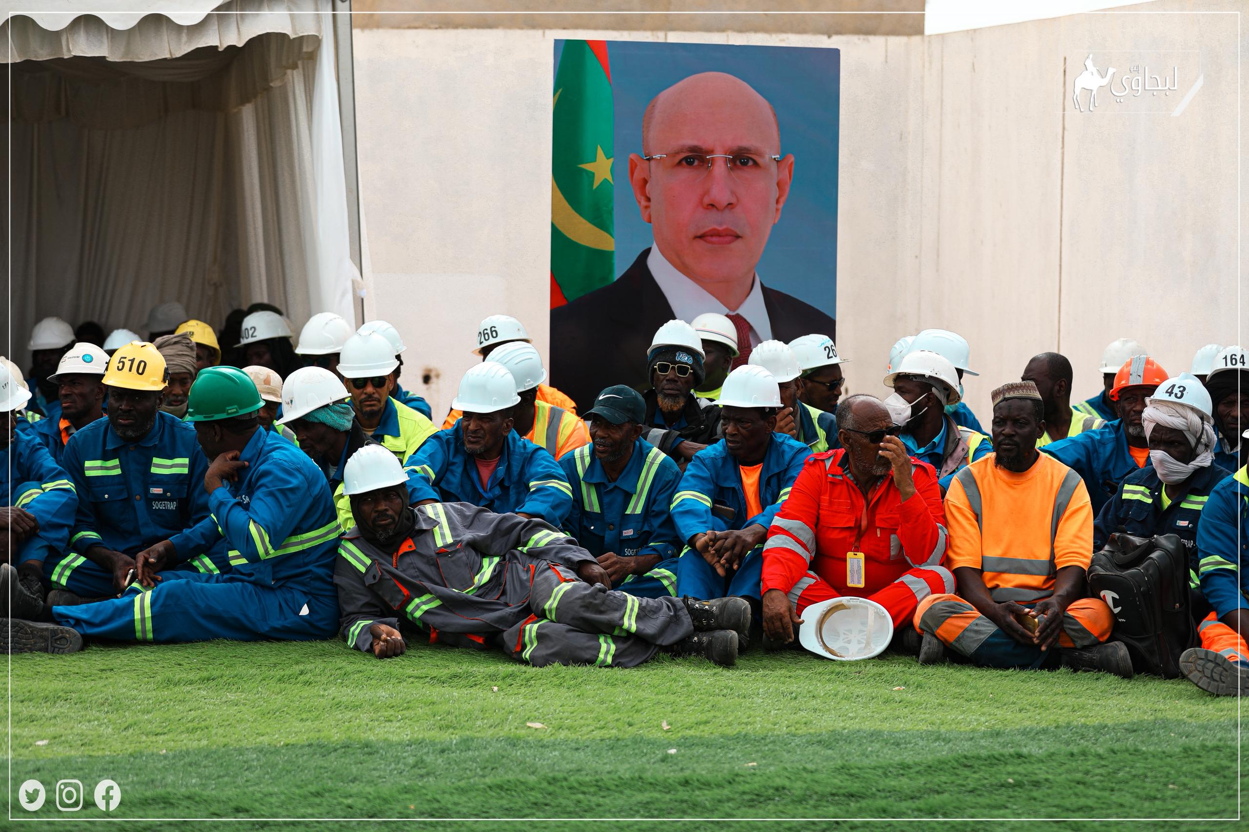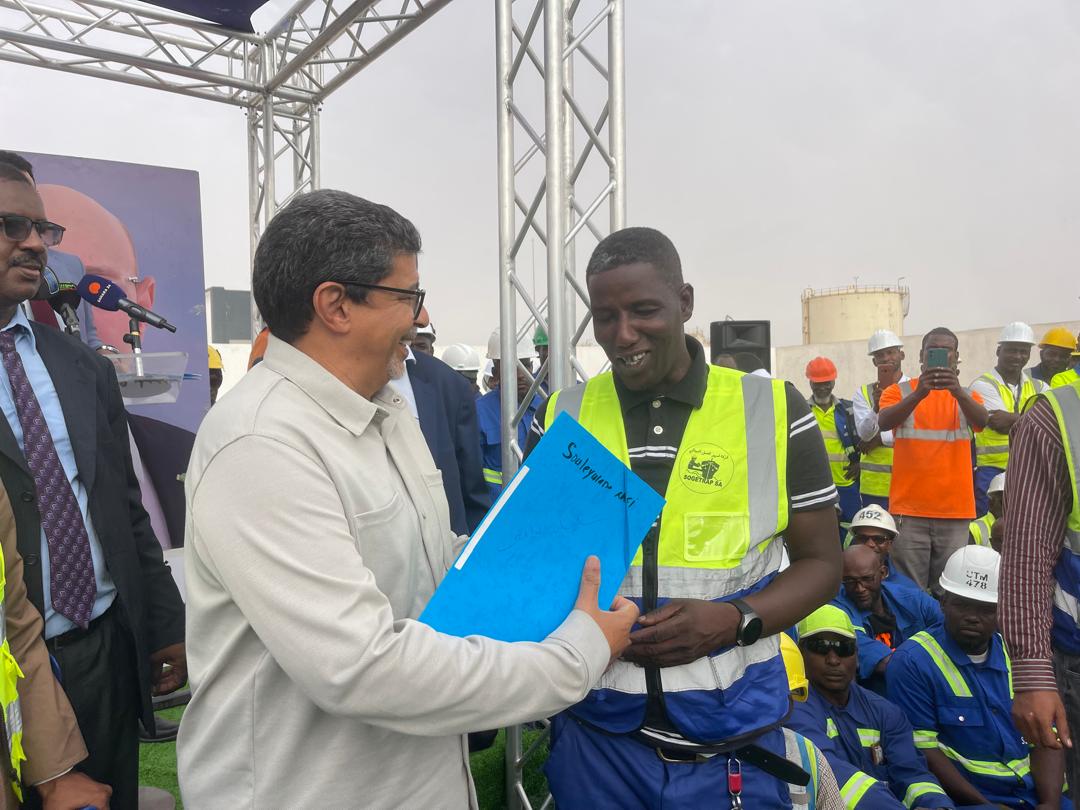 احتضن ميناء نواكشوط المستقل، مساء اليوم الخميس، حفلا مخصصا لتوزيع قطع أرضية على مجموعة من الحمالة العاملين بشركة "سوجيتراب"، وذلك في إطار تنفيذ تعهد لرئيس الجمهورية، السيد محمد ولد الشيخ الغزواني، دعمًا للفئات العمالية.