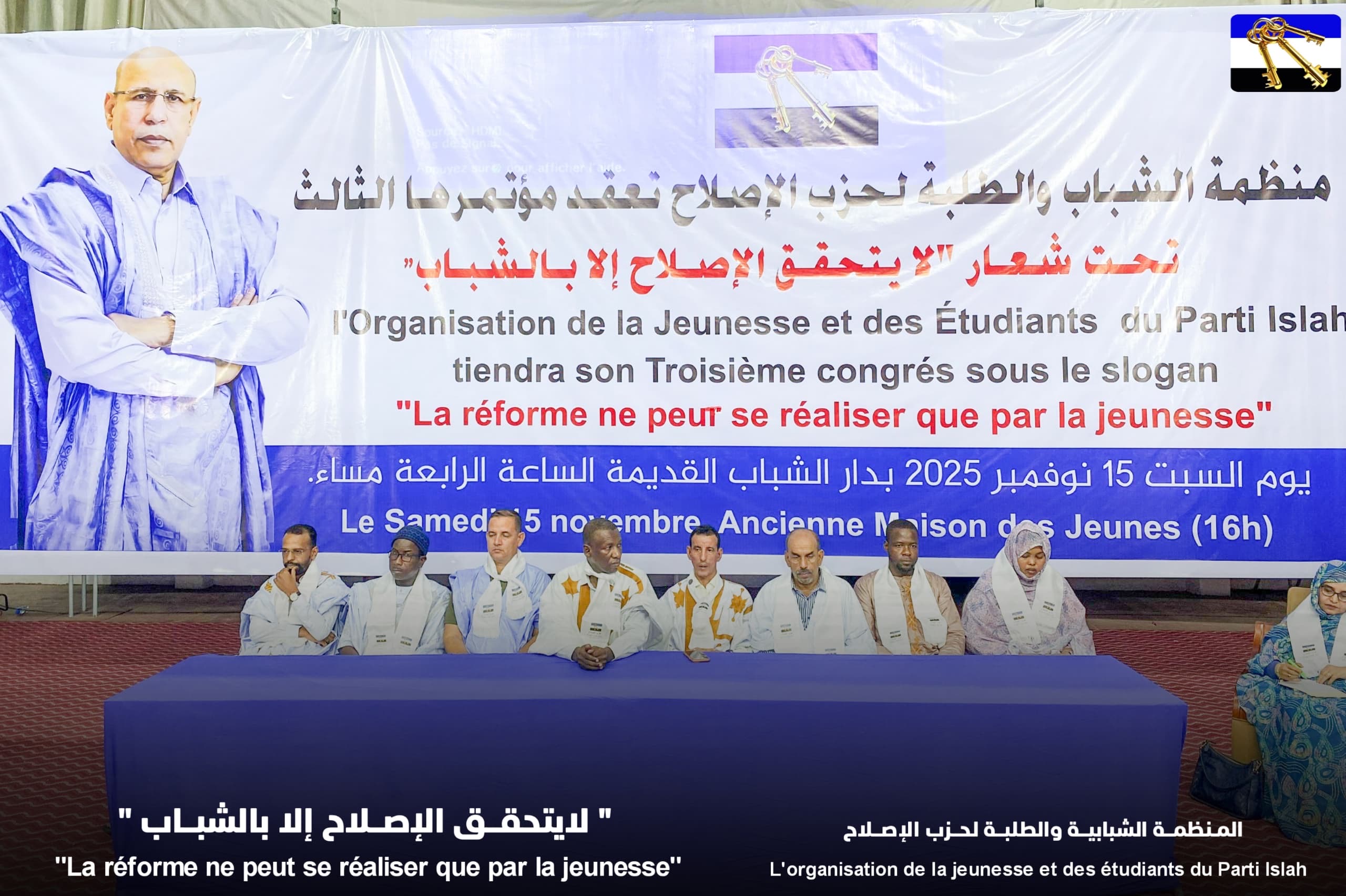 عقدت مساء السبت 15 نوفمبر 2025 منظمة الشباب والطلبة لحزب الإصلاح مؤتمرها الثالث تحت عنوان ( لايتحقق الإصلاح إلا بالشباب ) وقد حضر حفل افتتاح المنظمة بعض قيادات الحزب من بينهم رئيسه النائب الأستاذ محمد ولد طالبن وأمينته العامة الوزيرة مسعودة بحام محمد لغظف ونائبة الرئيس النائب البرلماني مريم وان وممثلوا بعض المنظمات الشبابية في الأحزاب السياسية الوطنية وكذلك ممثلون عن حزب حركة النضال الوطني في تونس وحركة حماس الفلسطينية .