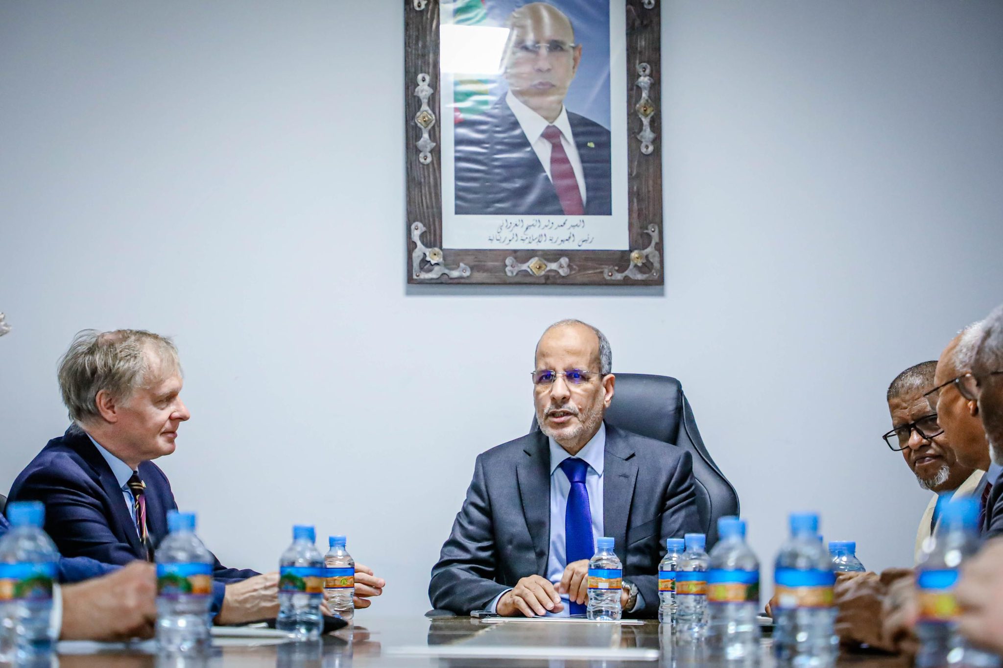 استقبل معالي وزير التكوين المهني والصناعة التقليدية والحرف السيد محمد ماء العينين ولد أييه، صباح اليوم الخميس في نواكشوط، بعثة من جمهورية ألمانيا الاتحادية، تضم سعادة السيد فلوريان رايندل، سفير ألمانيا الاتحادية المعتمد لدى بلادنا، و وفداً من شركائنا في التنمية مثل التعاون الألماني GIZ و بنك التنمية الألماني KFW على رأسهم مدير شؤون افريقيا بوزارة التعاون الاقتصادي و التنمية بجمهورية المانيا الاتحادية السيد كريستوف راو.