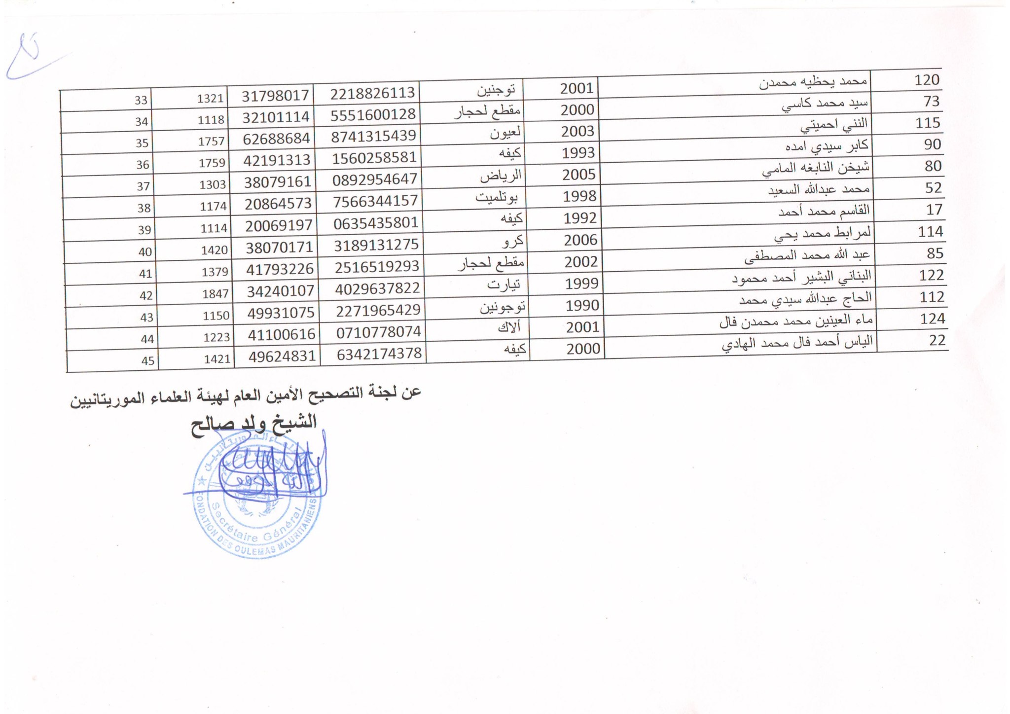 أعلنت وزارة الشؤون الإسلامية والتعليم الأصلي اليوم الثلاثاء قائمة الفائزين بجائزة رئيس الجمهورية لحفظ وفهم المتون المحظرية في نسختها السادسة «محضر النتائج».