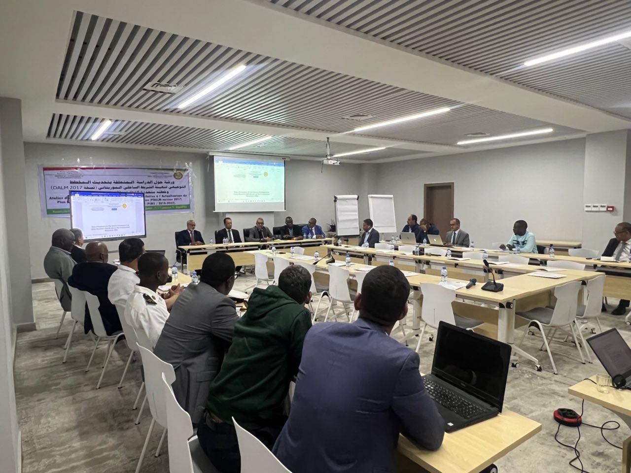 وتوزع المشاركون في الورشة على مجموعتين تعملان على دراسة الشريط الساحلي في شقيه الشمالي والجنوبي. ويغطي الشريط الشمالي المنطقة الممتدة من الرأس الأبيض في نواذيبو إلى رأس تيرميريس في انوامغار داخل حوض أرغين، بينما تشمل الدراسة في الشريط الجنوبي المناطق الممتدة من انوامغار إلى انجياكو مروراً بتانيت وميناء الصداقة وصولاً إلى ميناء انجياكو داخل الحظيرة الوطنية لجاولينغ. وتعمل المجموعتان على تقييم الوضعية الراهنة لهذه المناطق وتقديم مقترحات عملية تستجيب للتغيرات البيئية والمناخية المسجلة.