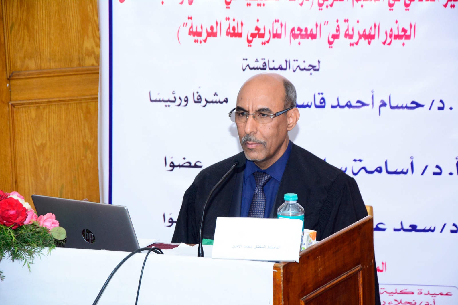 احتضنت كلية الآداب والعلوم الإنسانية بجامعة القاهرة يوم السبت ٢٠ ديسمبر ٢٠٢٥ مناقشة الرسالة التي تقدم بها الملحق الثقافي بسفارة الجمهورية الإسلامية الموريتانية بالقاهرة المستشار المختار الجيلاني لنيل درجة دكتوراه الفلسفة في اللسانيات حول موضوع: التغير الدلالي في المعجم العربي.