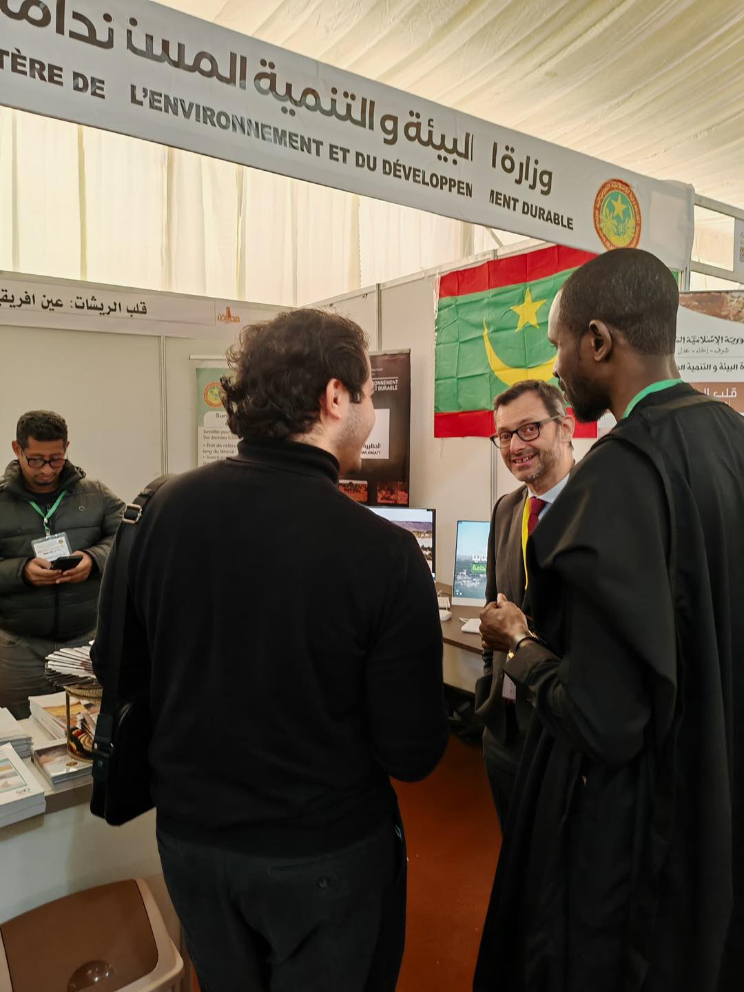وشهد جناح الوزارة إقبالًا لافتًا من عدد من الشخصيات الرسمية والدبلوماسية، في دلالة واضحة على الاهتمام المتزايد بالمبادرات والبرامج البيئية المعروضة. ومن بين أبرز الزوار سعادة سفير الجمهورية الفرنسية لدى موريتانيا، السيد سبستيان بنييه، إلى جانب السيدة أغنيس بلاسيل، المستشارة الأولى ورئيسة قسم الشؤون السياسية والإعلام والصحافة ببعثة الاتحاد الأوروبي.