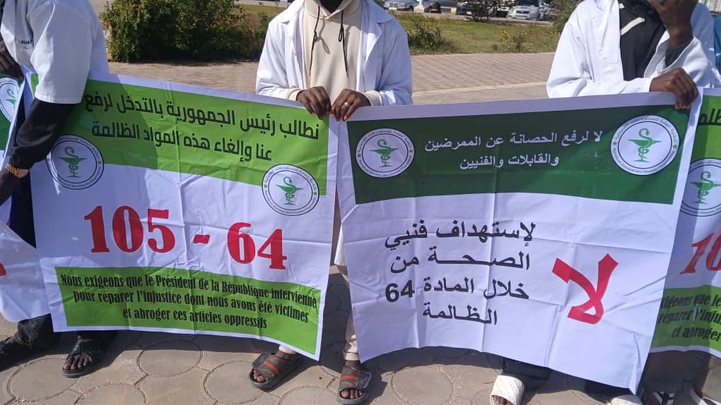 نظمت سبع نقابات طبية اليوم الاثنين وقفة احتجاجية في ساحة الحرية بنواكشوط قبالة الجمعية الوطنية، ضد قانون الصيدلة الجديد.