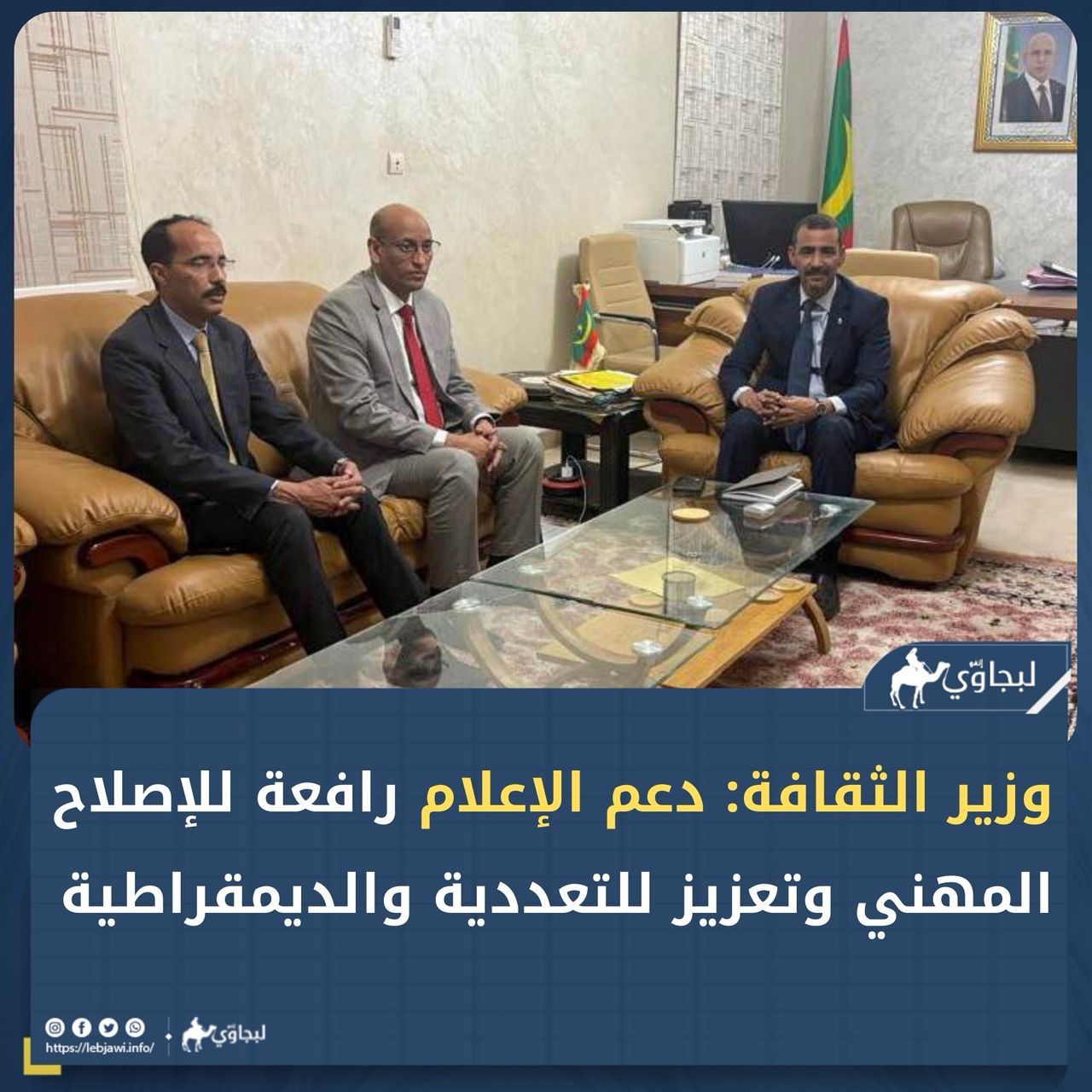 وخلال هذا اللقاء، أكد معالي الوزير أن رئيس الجمهورية محمد ولد الشيخ الغزواني، يولي عناية خاصة لقطاع الصحافة والإعلام، باعتباره ركيزة أساسية في ترسيخ الديمقراطية وتعزيز دولة القانون، وهو ما تجسّد في تسارع وتيرة الإصلاحات الهيكلية والتنظيمية الرامية إلى مهنية القطاع، وتحسين ظروف العاملين فيه، وزيادة حجم الدعم العمومي الموجَّه لوسائل الاتصال.