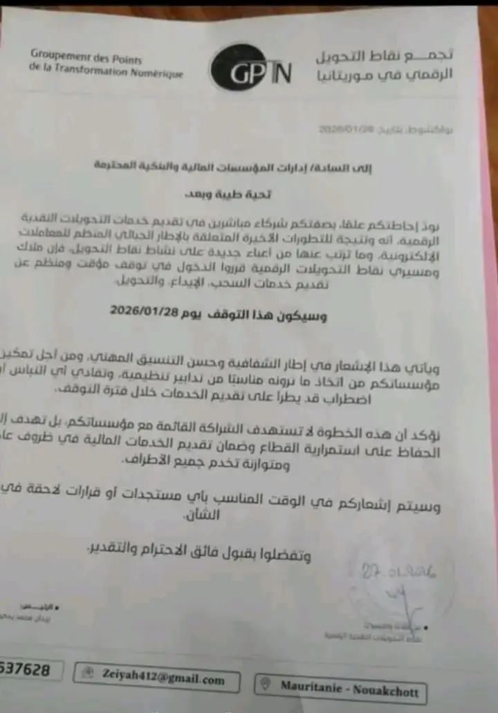 قرر تجمع وكلاء التحويل الرقمي إغلاق جميع الوكالات التابعة لهم، اعتراضا على ضريبة 10% على الوكلاء و0.1% على التحويلات عبر التطبيقات الرقمية، وذلك ابتداء من يوم غد 28 يناير الحاري.