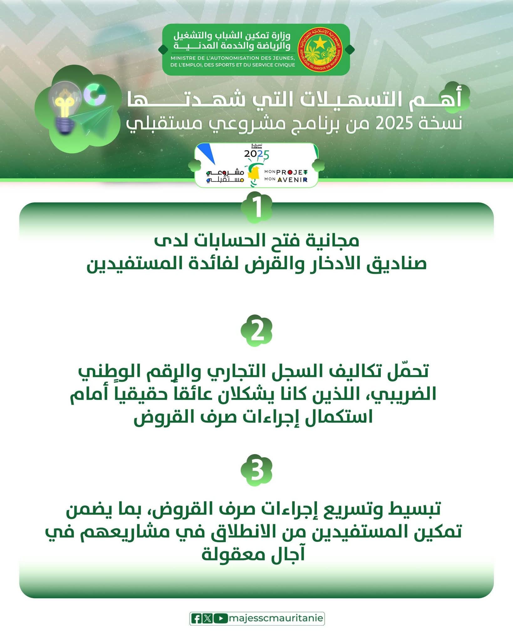 أعلنت إدارة برنامج "مشروعي مستقبلي" أن نسخة 2025 من البرنامج شهدت إدخال مجموعة من التسهيلات غير المسبوقة، تهدف إلى إزالة العوائق التي كانت تواجه المستفيدين في النسخ السابقة.