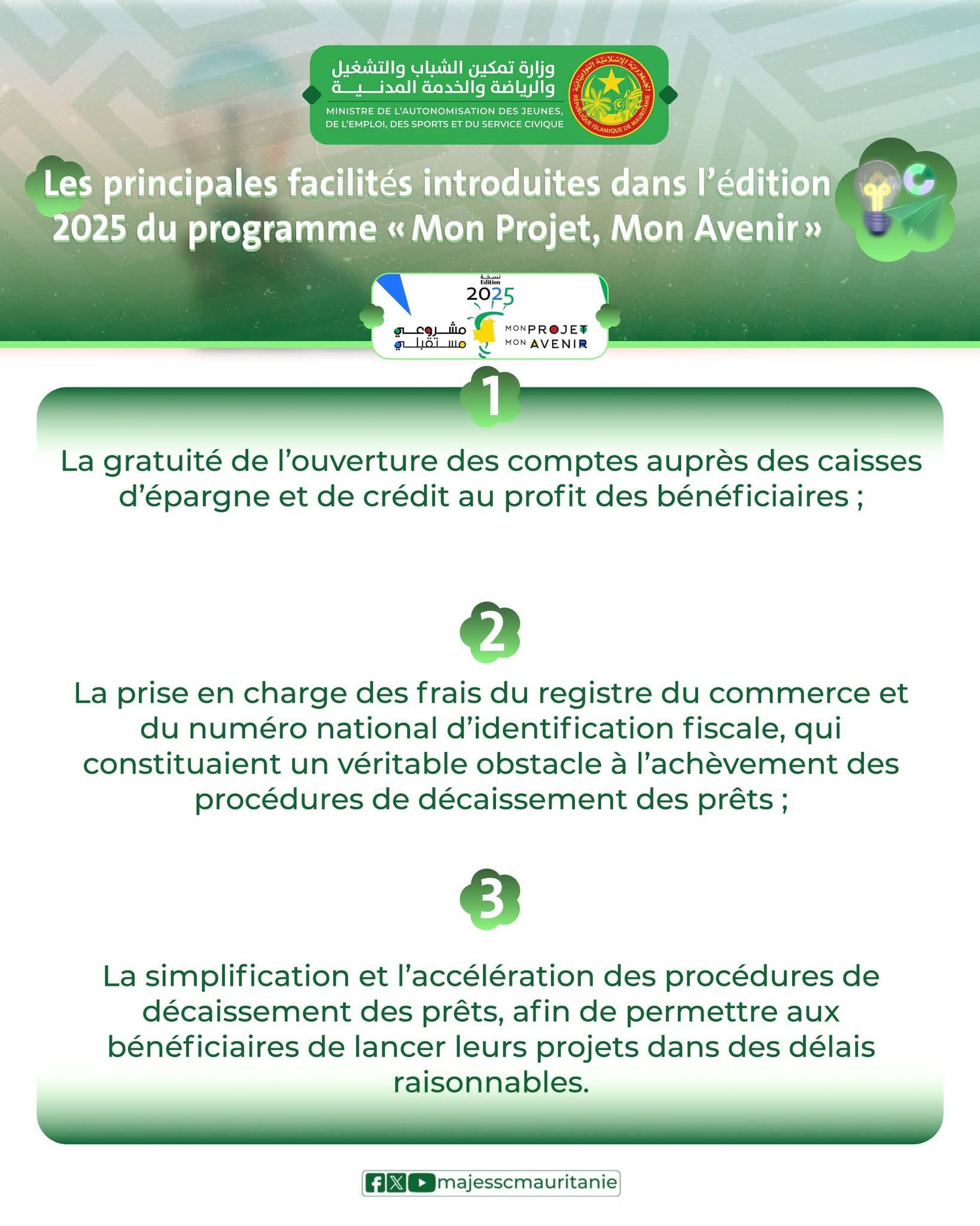وتشمل هذه التسهيلات، على سبيل المثال، مجانية فتح الحسابات لدى صناديق الادخار والقرض، وتحمل تكاليف السجل التجاري والرقم الوطني الضريبي، إضافة إلى تبسيط وتسريع إجراءات صرف القروض لتمكين الشباب من إطلاق مشاريعهم في آجال مناسبة.