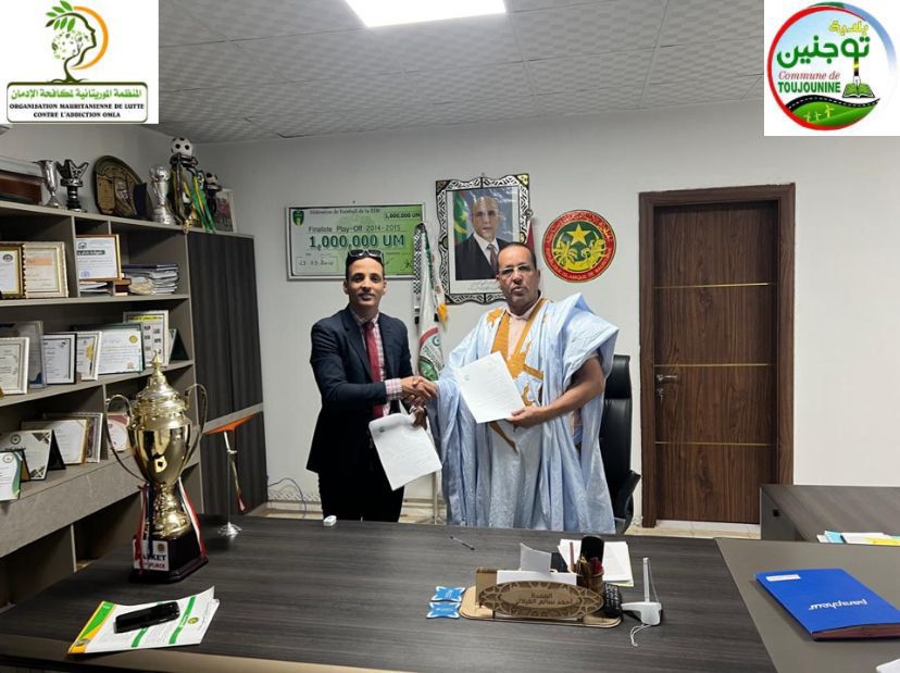 تم توقيع اتفاقية شراكة بين المنظمة الموريتانية لمكافحة الإدمان وبلدية توجنين، وذلك بحضور عمدة البلدية محمد سالم الفلالي، ورئيس المنظمة، ودو سيدي مختار الشريف، في إطار تعزيز التعاون بين المجتمع المدني والسلطات المحلية.
