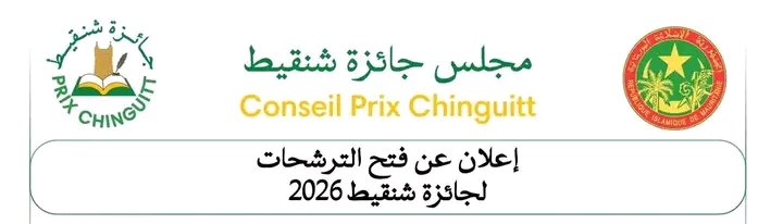 أعلن مجلس جائزة شنقيط عن فتح باب الترشحات لنيل الجائزة لعام 2026، وذلك بهدف تكريم الأبحاث المتميزة في مجالات الدراسات الإسلامية، والعلوم والتقنيات، والآداب والفنون. ويستمر استقبال ملفات الترشح من 15 يناير حتى 31 مارس كآخر أجل، على أن يتم إعلان النتائج في موعد أقصاه 31 أكتوبر 2026.