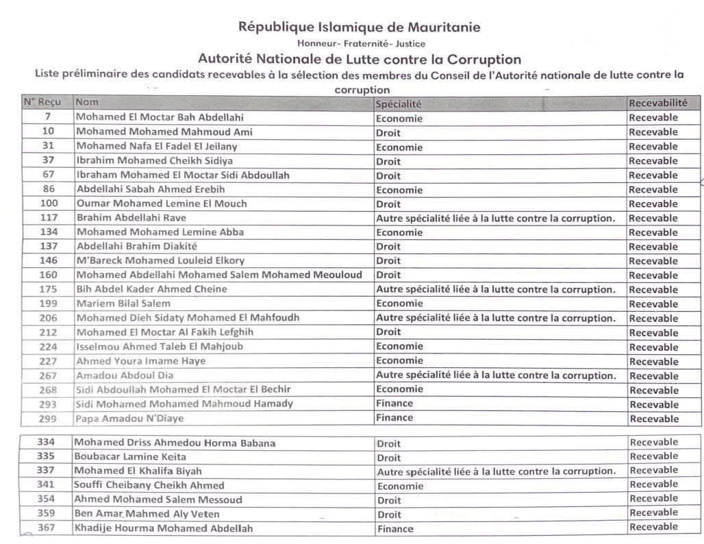 أعلنت السلطة الوطنية لمكافحة الفساد فتح باب الطعون أمام المترشحين والمواطنين على اللائحة الأولية التي تضم 29 مترشحا لعضوية مجلسها، بعد استيفائهم المعدلات المطلوبة وفق شبكة التقييم.