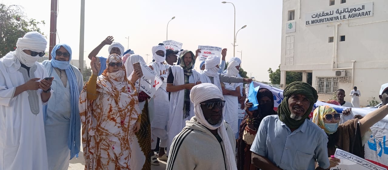 نظم عدد من المواطنين اليوم الخميس وقفة احتجاجية أمام وزارة العقارات، مناشدين رئيس الجمهورية محمد ولد الشيخ الغزواني التدخل لاسترجاع أراضيهم الواقعة في منطقة تيارت والتي تمّت مصادرتها، وفق تعبيرهم.