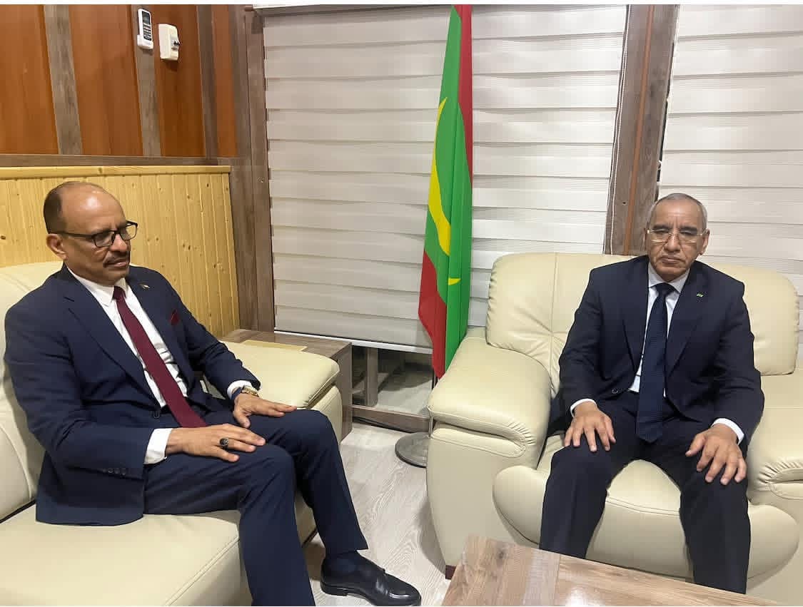 استقبل وزير الداخلية وترقية اللامركزية والتنمية المحلية، محمد أحمد ولد محمد الأمين، اليوم الثلاثاء بمقر الوزارة، القائم بالأعمال بالسفارة السودانية في موريتانيا، عبد الحميد بشرى إبراهيم.
