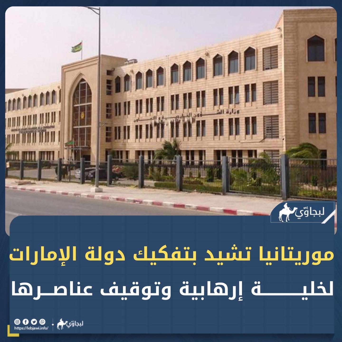 "تعرب وزارة الشؤون الخارجية والتعاون الإفريقي والموريتانيين في الخارج، عن إشادتها بالإجراءات الأمنية التي اتخذتها دولة الإمارات العربية المتحدة الشقيقة يوم 20 أبريل 2026، والتي أسفرت عن تفكيك تنظيم إرهابي والقبض على عناصره.