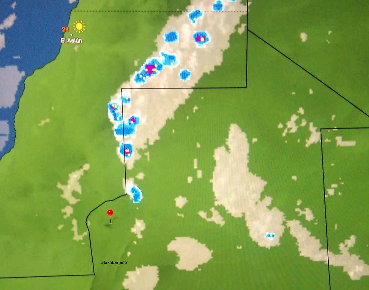 تشير آخر معطيات الطقس في أجواء موريتانيا ومحيطها إلى وجود سحب ماطرة غزيرة على الجنوب الغربي من ولاية الترارزة، وقد تكونت هناك ابتداء من عصر اليوم، واتحدت مع سحب قادمة من ولاية كوركل.