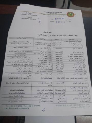 أصدر الامين العام لوزارة العدل مذكرة تم بموجبها اجراء تحويلات على مستوى كتاب الضبط وذلك على النحو التالي: