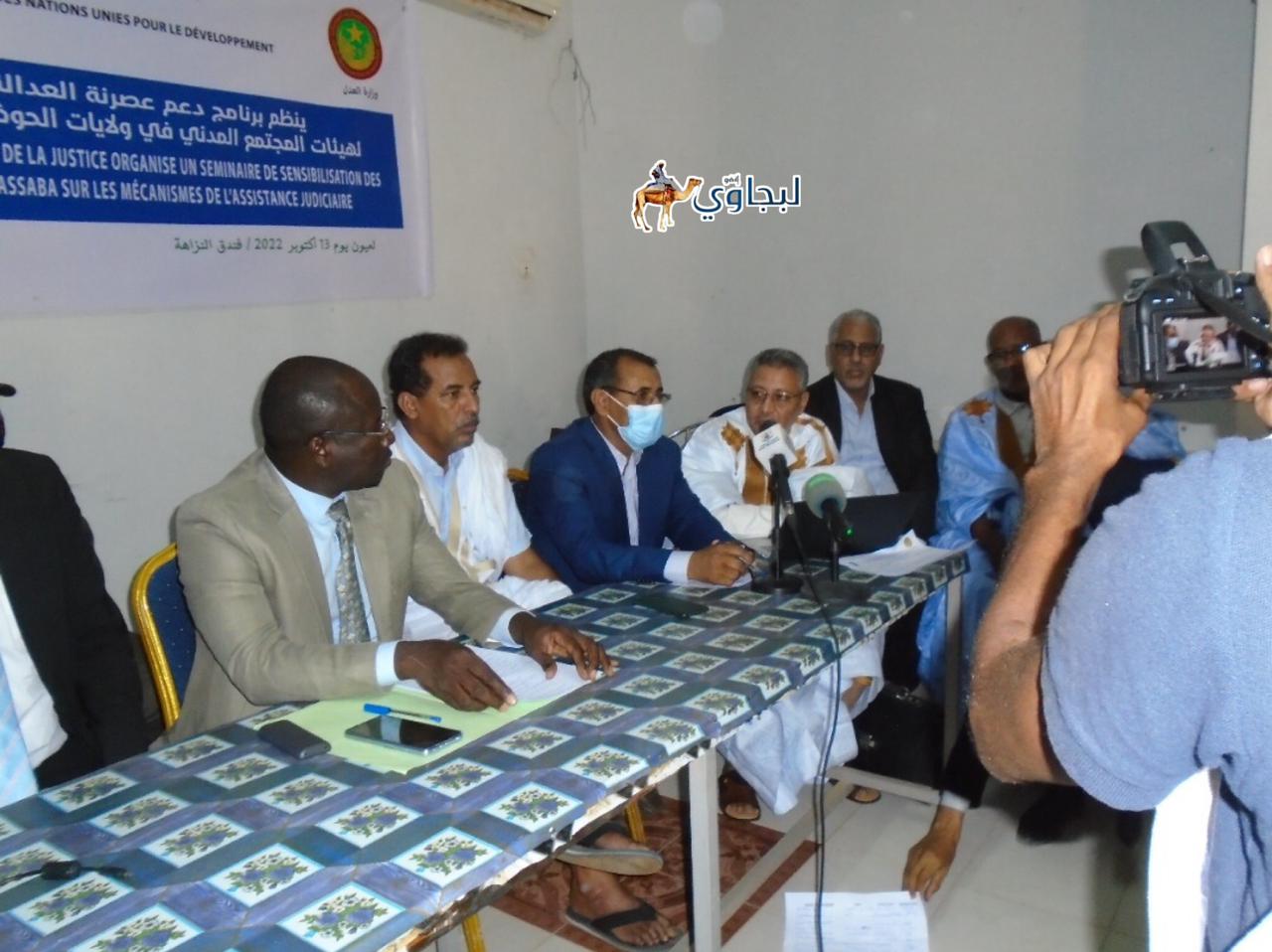 انطلقت اليوم الخميس بفندق النزاهة بمدينة لعيون عاصمة ولاية الحوض الغربي فعاليات ورشة تحسيسية حول نظام المساعدة القضائية لصالح هيئات المجتمع المدني بولآيات الحوضين ولعصابة.... الورشة منظمة بالتعاون بين وزارة العدل و برنامج عصرنة العدالة والوضوح إليها، و في كلمة له في حفل الافتتاح نوه المكلف بمهمة بالوزارة القاضي آدو ببانه بهذه الآلية الجديدة على نظامنا القضائي ، داعيا الهيئات المشاركة الى اغتنام فرصتها لفهمها اولا ، و القيام بعد ذلك بتوعية المواطنين للاستفادة منها ، و في عرضيه النظريين قدم المكلف بمهمة القاضي ولد ببانه كافة التفاصيل المتعلقة بمفهوم المساعدة القضائية و كيفية نشأتها و أهدافها و نظامها القانوني ، كما رد على على اسئلة واستشكالات المشاركين .
