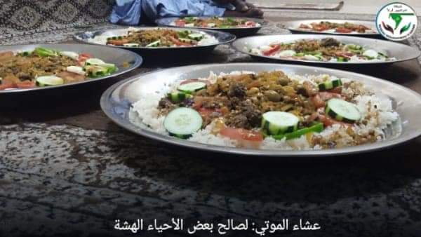 مساء يوم الخميس الموافق 20/10/2022 أي ليلة الجمعة كان لشبكة أنواذيبو أولا موعد وبرنامجها الأسبوعي ( أعش الموتى ) و هو عبارة عن عشاء متكامل لأسر ضعيفة الحال يوفر لها لكل ليلة جمعة صدقة عن موتى المسلمين. و هو تقليل ديني معروف في مجتمعنا الموريتاني التقليدي يهدف القائمون به من ورائه الترحم على موتاهم و إبلاغهم ثوابه عن طريق التصدق على المحتاجين