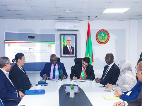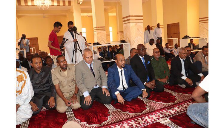 أشرف الامين العام للوزارة السيد بيت الله ولد أحمد لسود رفقة الأمين العام لوزارة الصيد والاقتصاد البحري السيد سيد عالي ولد سيد بوبكر اليوم الإثنين بميناء تانيت التابع لمركز أمحيجرات الاداري بمقاطعة بنشاب في ولاية إينشيري على تدشين”مجمع مسجد تانيت “.