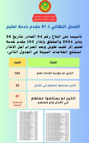 فصل 81 مدرسا بعد انتهاء مدة الإنذار