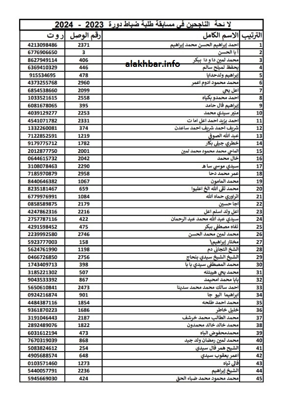 ونشر الموقع الإلكتروني للجيش أسماء 45 ناجحا في المسابقة، وفق الترتيب الاستحقاقي.