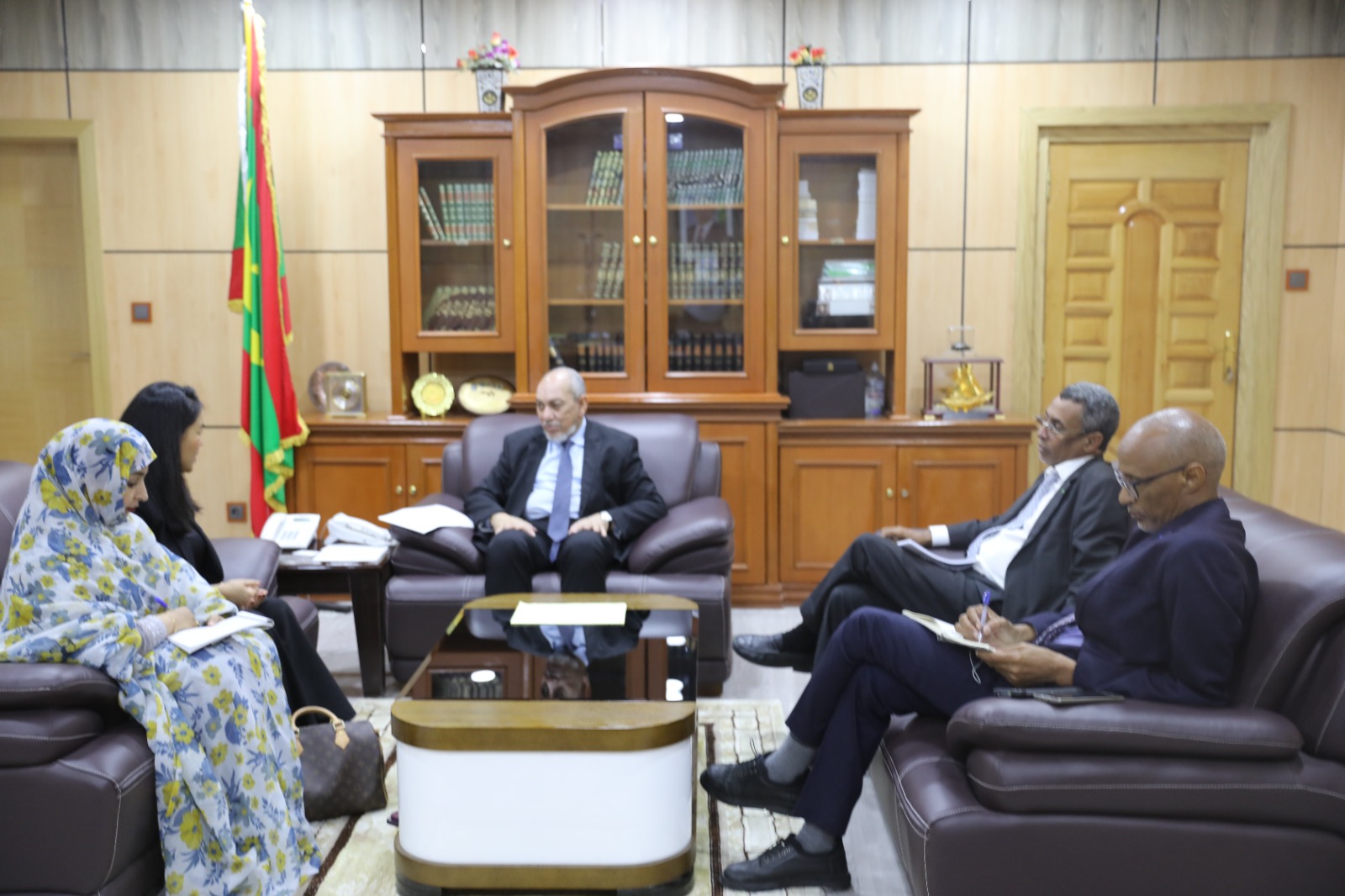 عقد وزير الزراعة الموريتاني أمم ولد بيباته الخميس بنواكشوط، جلسة مباحثات مع مديرة الوكالة الفرنسية للتنمية في موريتانيا بنديكت بريسي رفقة وفد من طاقم الوكالة.