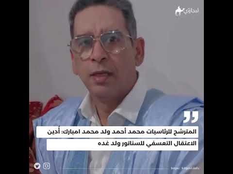 المترشح للرئاسيات محمد أحمد ولد محمد امبارك: أُدين الاعتقال التعسفي للسناتور ولد غده (فيديو)