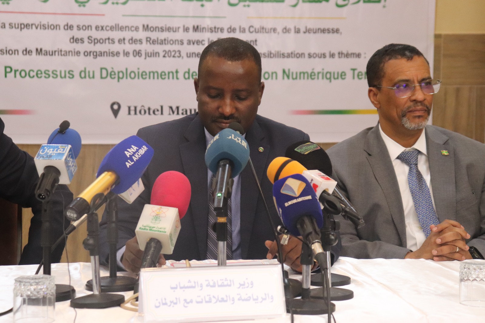 واستقبل رئيس الجمهورية بمطار نواكشوط الدولي (أم التونسي) من طرف معالي الوزير الأول السيد محمد بلال مسعود، والوزيرة المستشارة برئاسة الجمهورية، وعدد من أعضاء الحكومة، ووالي نواكشوط الغربية، ونائبة رئيسة جهة نواكشوط.