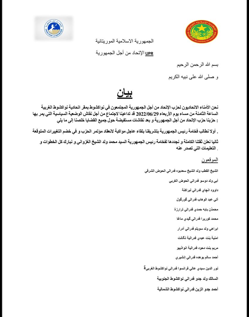 وأكد ولد بلال في كلمة خلال الاجتماع على الأهمية التي يوليها الرئيس محمد ولد الغزواني "لضرورة تعزير المسار الديمقراطي في إطار تشاوري يسعي إلى تعزيز المؤسسات الديمقراطية".