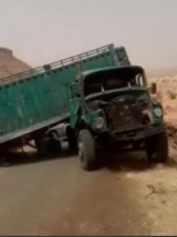 سقوط شاحنة في ممر انطرزي الجبلي يقطع الطريق الرابط بين أطار وقرية تيارت