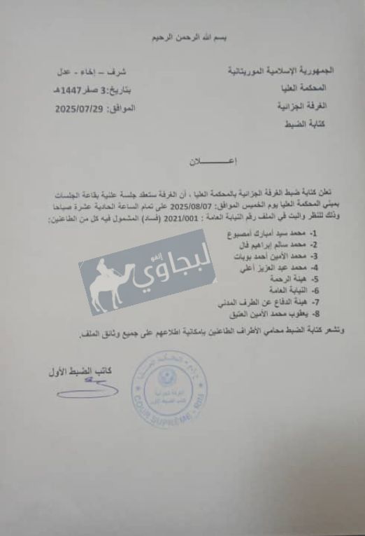 الغرفة الجزائية تقرر عقد جلسة للبت في طعون بعض المشمولين في ملف العشرية (إعلان)
