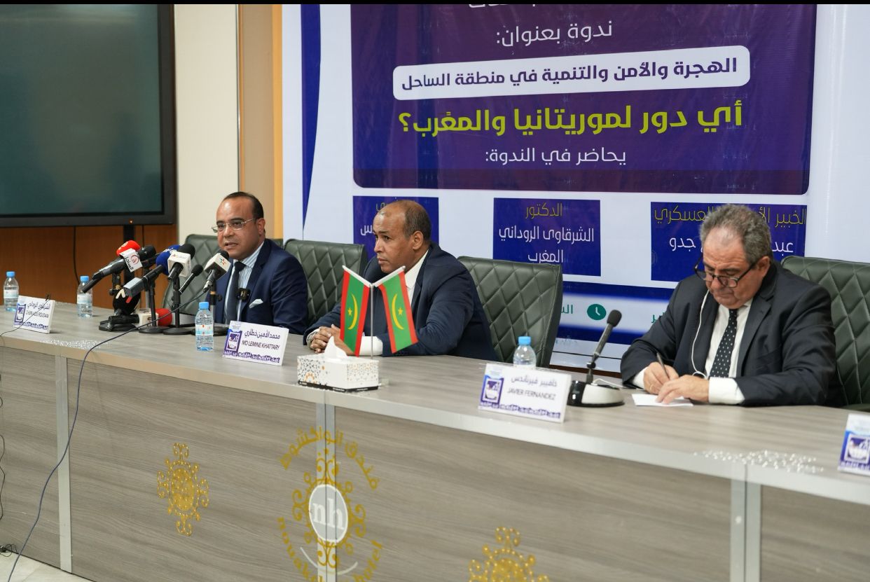 نظم المركز الأطلسي الساحلي للهجرة والمجتمعات مساء اليوم ندوة حول الهجرة والأمن والتنمية في منطقة الساحل، تحت عنوان "أي دور لموريتانيا والمغرب؟" وذلك بمشاركة مختصين في مجالات الأمن والتنمية والهجرة.