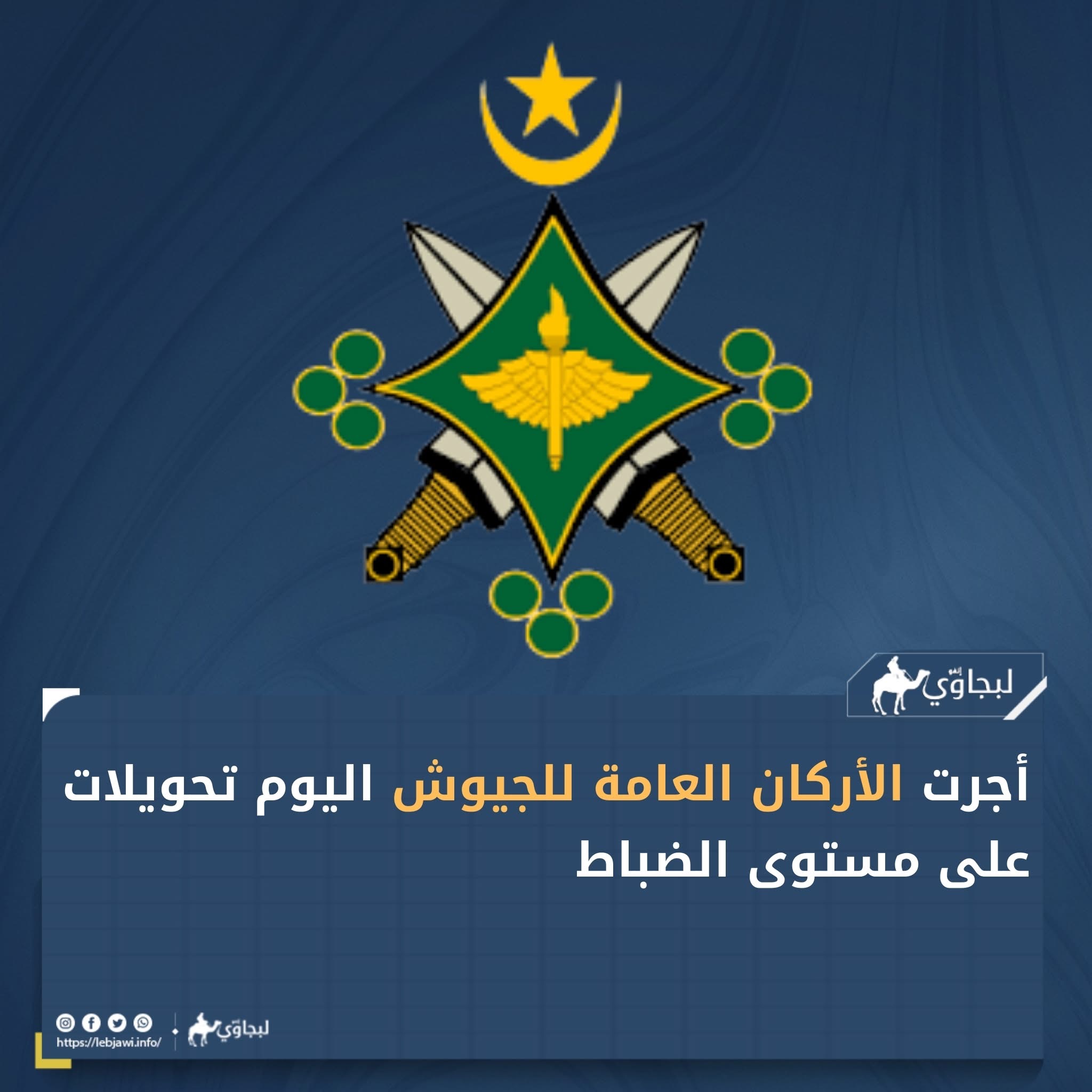 أجرت الأركان العامة للجيوش اليوم تحويلات على مستوى الضباط وذلك على النحو التالي :