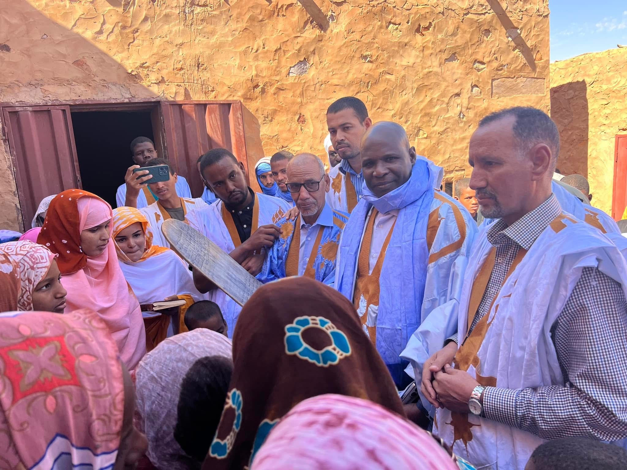 تفقد الوزير السيد/ سيدي يحي شيخنا لمرابط على هامش افتتاح مهرجان شنقيط المحظرة النموذجية بالجامع العتيق واستمع معالي الوزير إلى شروح مفصلة من مدير المحاظر والتعليم الأصلي ان ولد أحمد معلوم حول دور المحظرة المعرفي ورمزية وجودها بالجامع العتيق، كما استمع معالي الوزير من شيخ المحظرة اسلامة محمد خينا حول عدد الطلاب ومستوى الإقبال ونتائج التعليم المحظرى على أبناء المدينة.