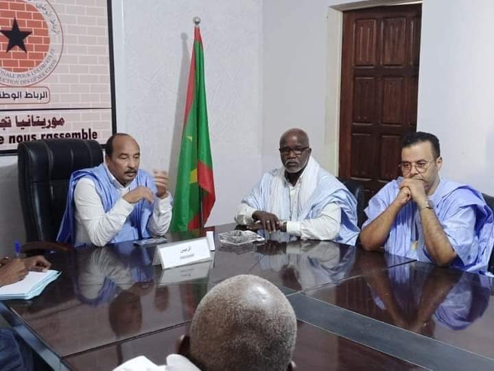 وظهر ولد عبد العزيز إلى جانب رئيس الحزب السعد ولد لوليد، إضافة إلى شخصيات قيادية أخرى بالحزب.
