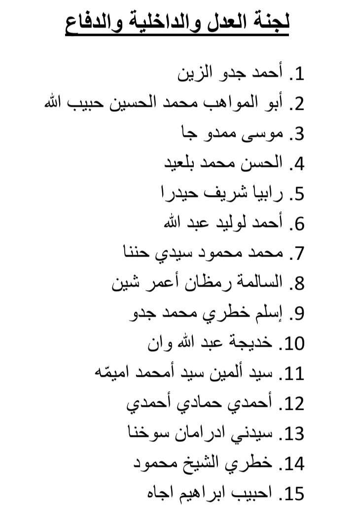 وتم في هذا الاطار انتخاب أمنة الحسن بوقل من حزب الصواب، بالتزكية لمنصب المقرر العام للميزانية بالإضافة إلى تحديد عدد أعضاء اللجان الدائمة كل على حدة.