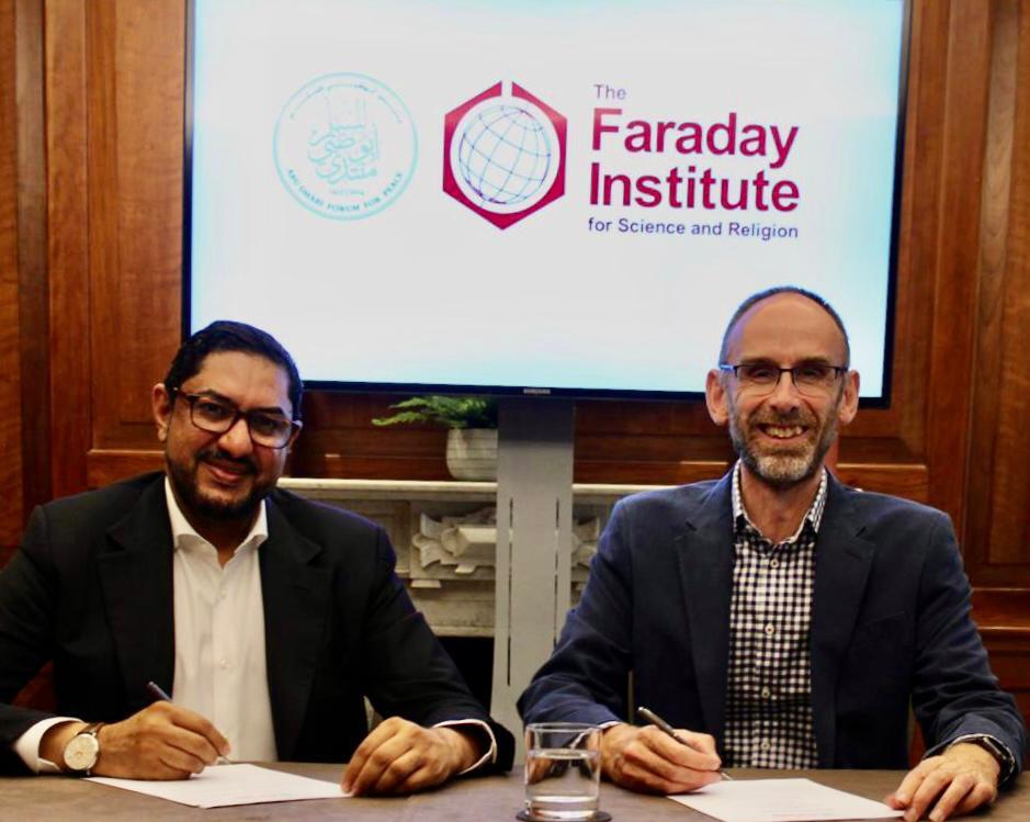 وقع منتدى أبوظبي للسلم اليوم اتفاقية تعاون مع معهد فراداي للعلوم والدين التابع لجامعة كامبريدج البريطانية والمتخصص في البحث بمجال علاقة العلوم والدين.