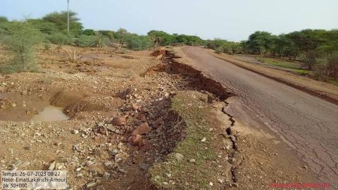 حذرت وزارة التجهيز والنقل سالكي المحاور الطرقية "النعمة - بنگو " و " أمات لعكاريش - أمورج " ، بالحوض الشرقي من وجود أضرار وحفر خلفتها الأمطار