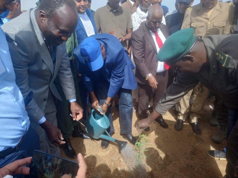 رئيس سلطة منطقة نواذيبو الحرة يشرف على غرس بعض الأشجار عند مدخل المدينة