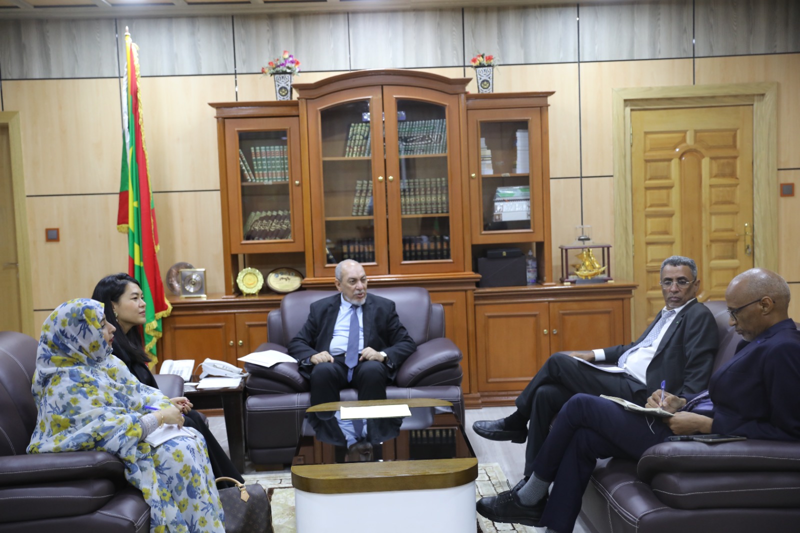 استقبل معالي وزير العدل محمد محمود ولد الشيخ عبد الله بن بيه ظهر اليوم الخميس 24-08-2023 رئيسة مكتب الأمم المتحدة لمكافحة الجريمة المنظمة والمخدرات ( ONUDC) في موريتانيا السيدة: هيلين فان.