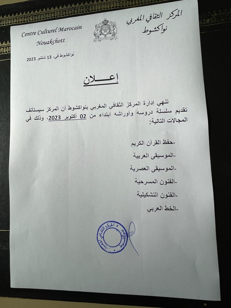 المركز الثقافي المغربي يعلن عن استأناف انشطته في اليوم الأول من أكتوبر