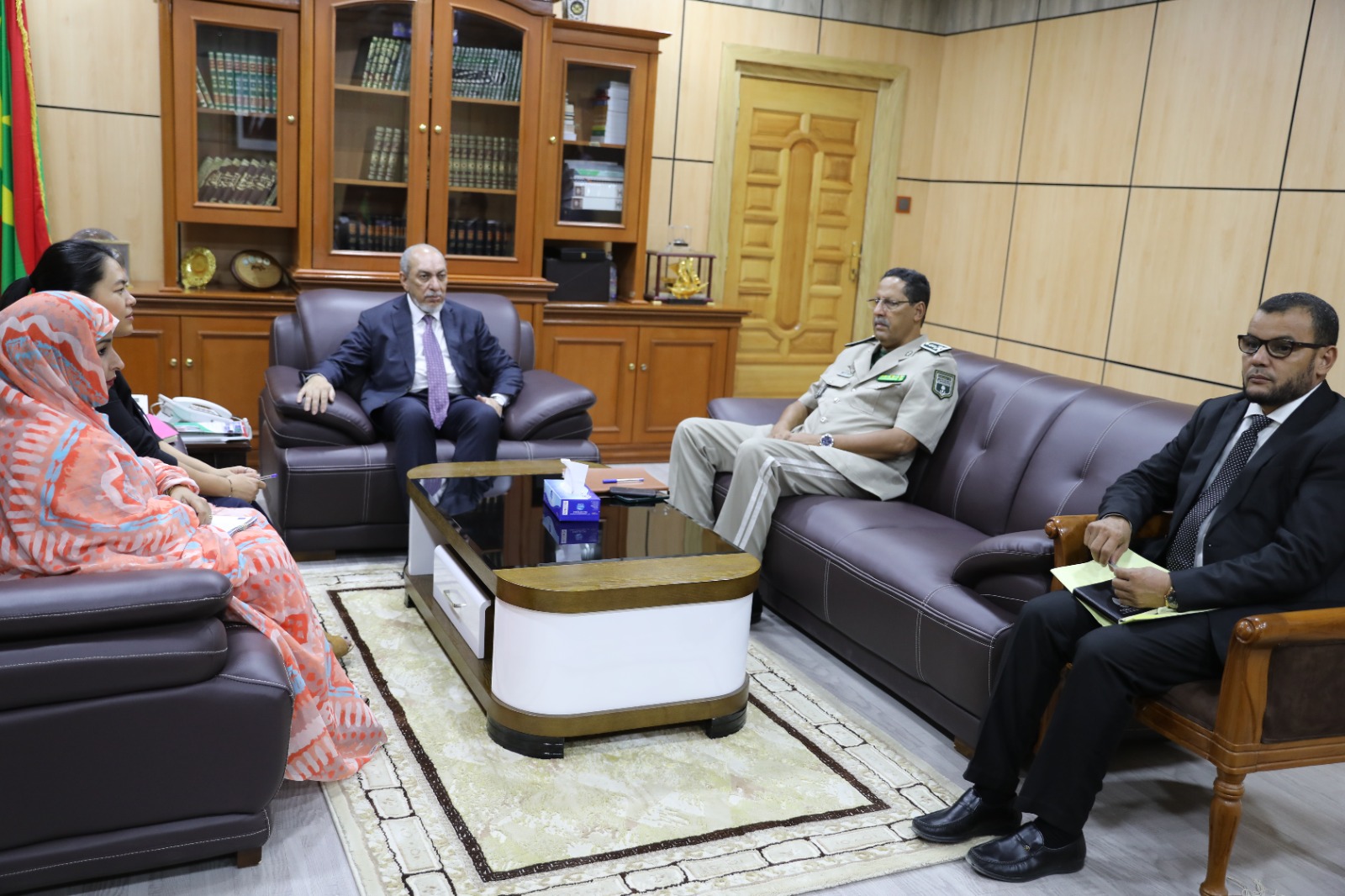 حضر اللقاء إلى جانب معالي الوزير كل من: الأمين العام للوزارة بالوكالة السيد سيد محمد ولد جدو، والقائد العام لأركان الدرك الوطني الجنرال عبد الله أحمد عيشة الملقب بلاهي وبعض أطر الوزارة.