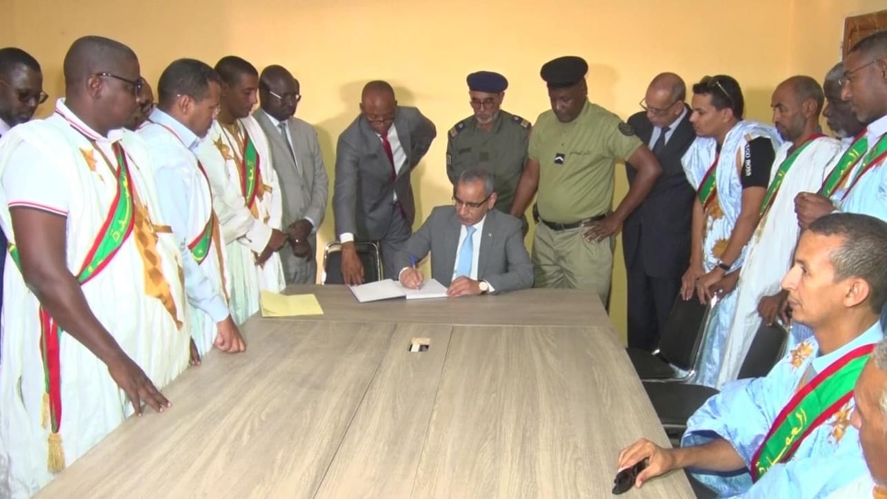 وكان الوزير قد ادى، قبل ذلك زيارة لمقر رابطة عمد ولاية الحوض الغربي في لعيون، حيث دون في إحدى صفحات سجل الرابطة.