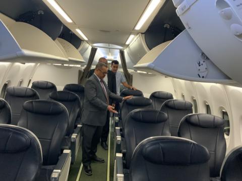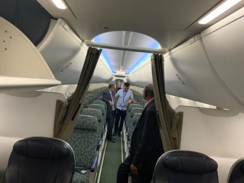 وكان في استقبال الطائرة بالمطار المدير العام للموريتانية للطيران أحمد سالم محمد فال عمي رفقة المدير الفني ومجموعة من عمال الشركة، حيث قدمت له شروح مفصلة عن الطائرة و عن خصائصها الفنية بالإضافة إلى ميزاتها المتعلقة براحة الركاب.