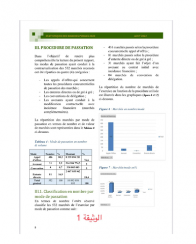 • أن سلطة تنظيم الصفقات تصدر تقارير مضللة – تحول منها نسخ لرئيس الجمهورية ورئيس البرلمان - لا تمت للشفافية بصلة، حيث ورد في تقريرها لسنة 2020 أن مجموع صفقات التراضي بلغت 20 مليارا في حين أنها زادت على 40 مليار (انظر الوثيقة 1 )، وأن مجموع صفقات التراضي لسنة 2021 كان 18 مليارا في حين أن صفقات التراضي في تلك السنة زادت على 100 مليارا (أنظر الوثيقة 2) .