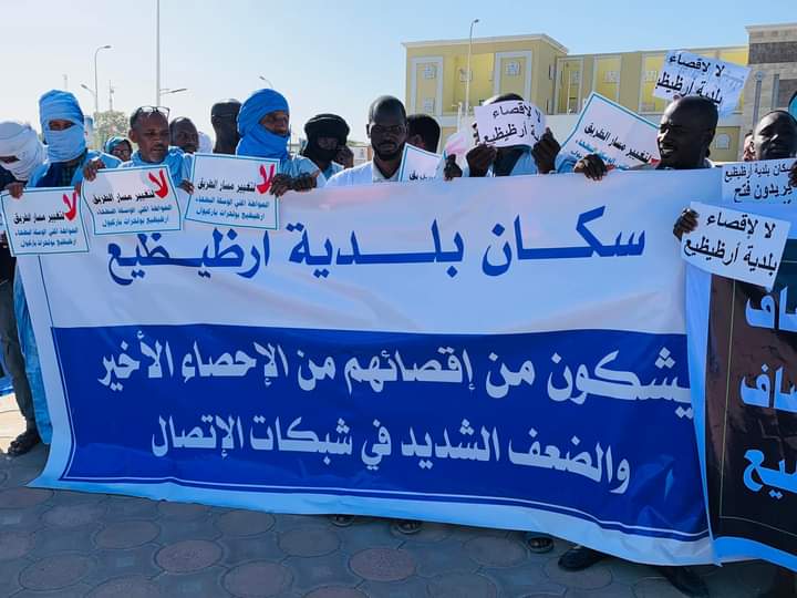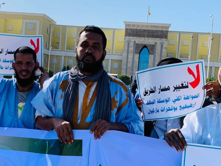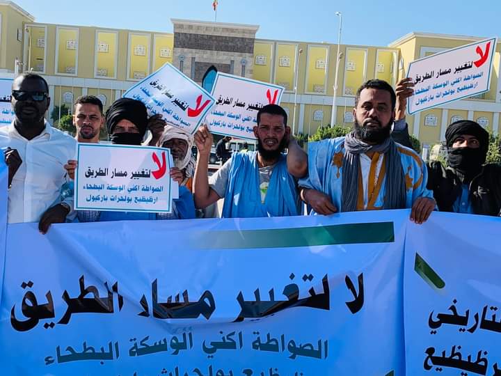 نظم مجموعة من سكان قرى بلديتي (ارظيظيع و الواد لبيظ ) وقفة احتجاجية فى ساحة الحرية بالعاصمة انواكشوط اليوم الأربعاء رافضين تغير مسار طريق السواطه _باركيول.