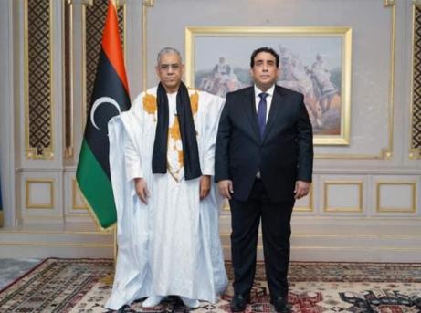 خلال حفل رسمي في مقر مجلس الرئاسة الليبي بطرابلس، تسلم رئيس المجلس؛ محمد المنفي، اليوم (السبت) أوراق اعتماد محمد ولد ببانه؛ سفيرا جديدا لموريتانيا لدى دولة ليبيا.