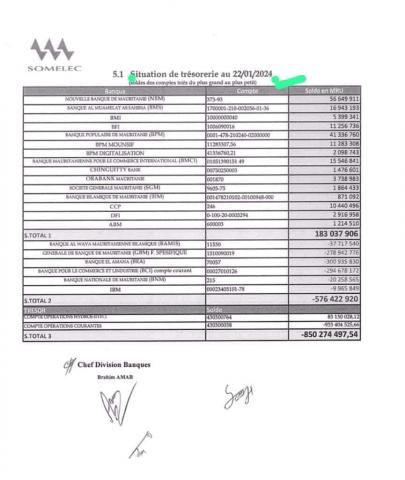 بدأت بعثة من المفتشية العامة للدولة مهمة تفتيش الشركة الوطنية للكهرباء (صوملك) ،بعد ورود معلومات حول عمليات فساد واسعة حصلت في فترة المدير العام السابق الشيخ ولد بده ،حيث ترى مصادر أن الشركة وصلت مستوى كارثي من سوء التسيير الاداري والمالي نتجت عنه وضعية قد تعجل بإفلاسها ..