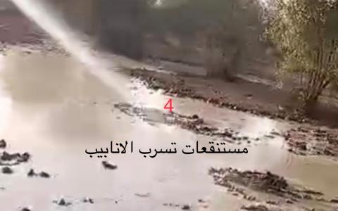 تأكدنا من خلال الزيارات الميدانية التي أجريناها من رداءة نوعية شبكة الأنابيب وملحقاتها، حيث صادفنا التسرب في كل مكان، رغم محدودية الضخ وتقطعه (الوثيقة 4 : انظر الصور) .